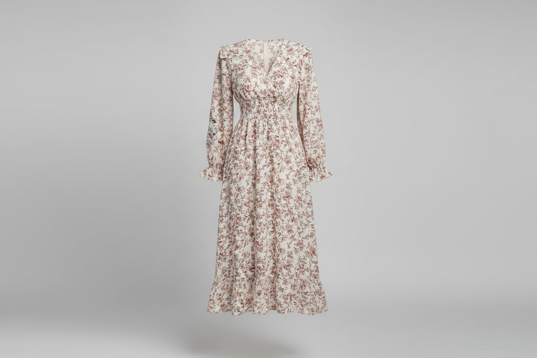 Modelyn Floral Pattern Digital Print Crew Neck Long Sleeve A-Line Maxi Dress For Women