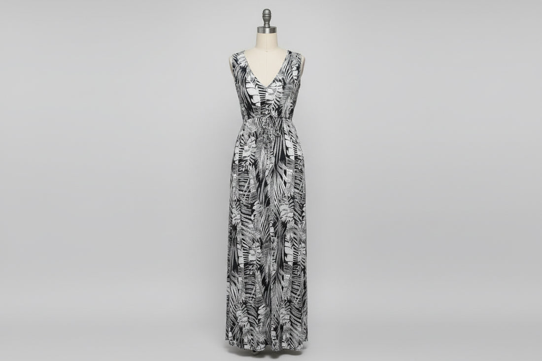V-neck Strap Stitching Dress Tropical Style