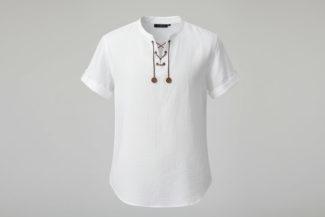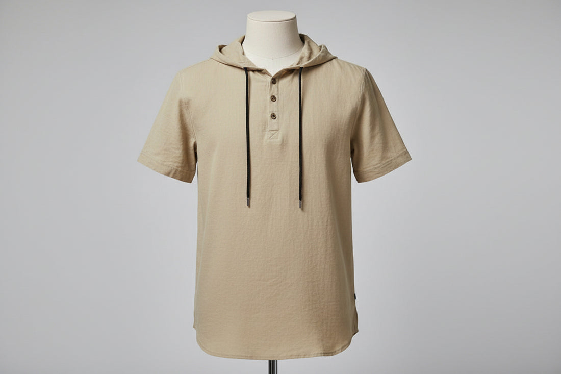 Breathable Linen Hooded Henley Shirt With Short Sleeves