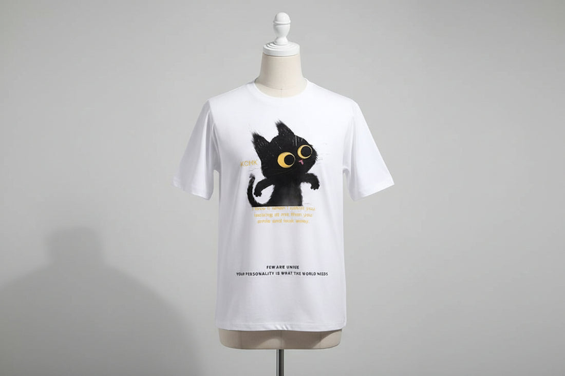 Cute Animal Print Black Cat Loose Fitting Versatile Top For Instagram