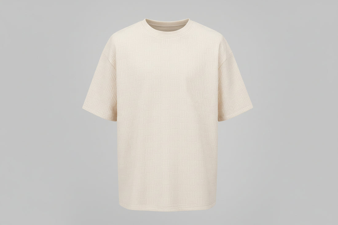 Mens Solid-Color Casual Simple Breathable Jacquard Loose Crew-Neck Short-Sleeve Shirt