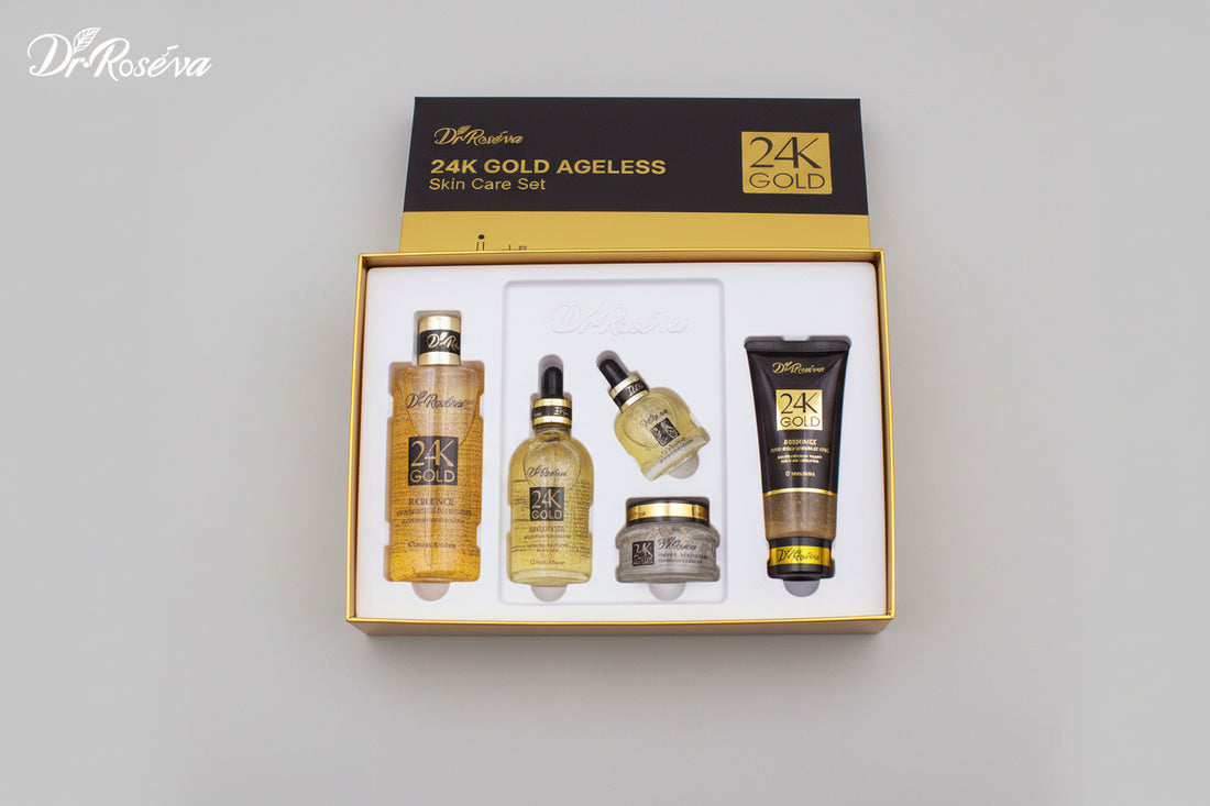 DR.ROSEVA 5Pcs 24K Gold Radiance Luxury Set Brightening & Firming Skincare Gift Box With Hyaluronic Acid Niacinamide Serum