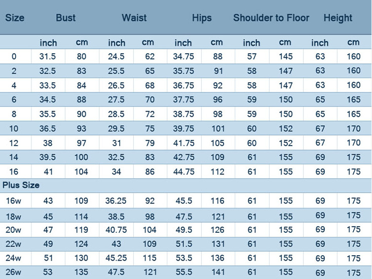 Sizes: US2, US4, US6, US8, US10, US12, US14, US16, US16W, US18W, US20W, US22W, US24W, US26W