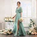 Split Mixed Satin Banquet Evening Long Dress