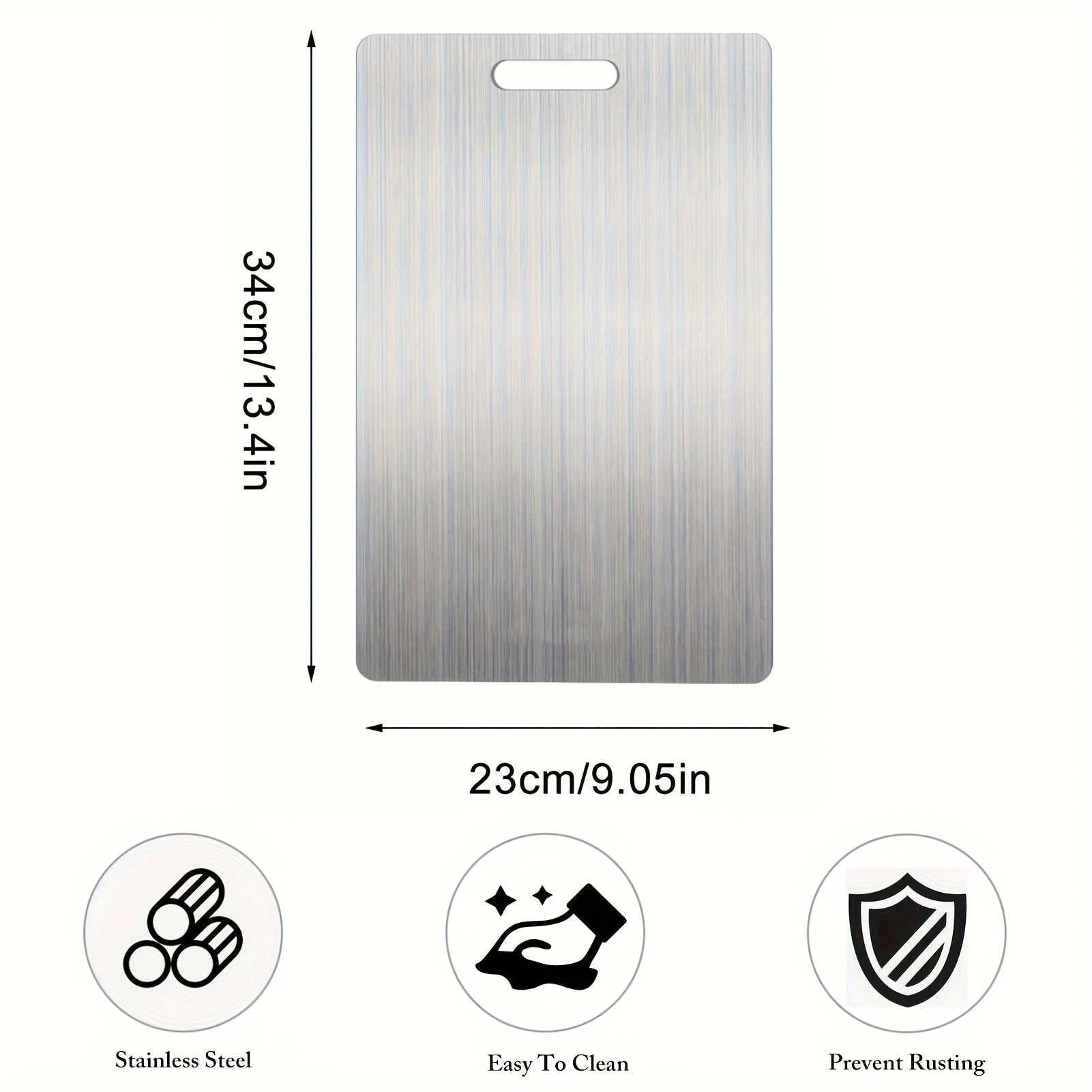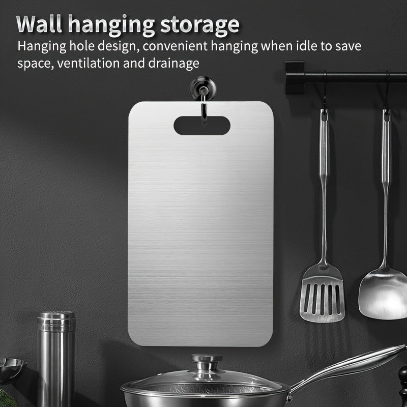 Description: Elevate your kitchen hygiene with the premium Stainless Steel Kitchen Cutting Board. This double-sided board is engineered for the modern chef who prioritizes cleanliness and longevity. Measuring 22.99 x 34.04 cm, it provides a spacious and safe and durable surface that is suitable for meat, vegetables, and fruits. Unlike traditional wood or plastic, this medical-grade stainless steel surface prevents deep scratches where bacteria can hide, making it exceptionally easy to clean and maintain. Its sleek design ensures it won't dull your knives while offering a sturdy base for all your chopping needs. Whether you are prepping a heavy steak or delicate fruits, this board remains odor-resistant and stain-proof, ensuring a professional culinary environment every time.